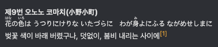 오노노 코마치라는 여류시인이 유명한데 매우 예뻤던 시인이라고 한다. (잘모름)